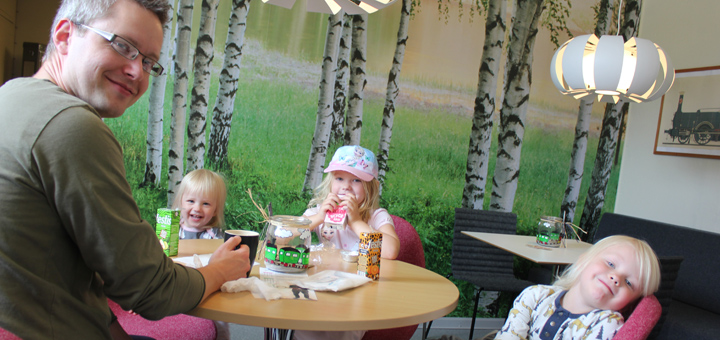 Å så gott att få sjunka ner på en stol i Millans mysiga café. Det finns ju så mycket att titta på och göra på Minivärlden Ljungby. Då behöver man en paus ibland, och vad är bättre än ett café med hembakad kärlek.